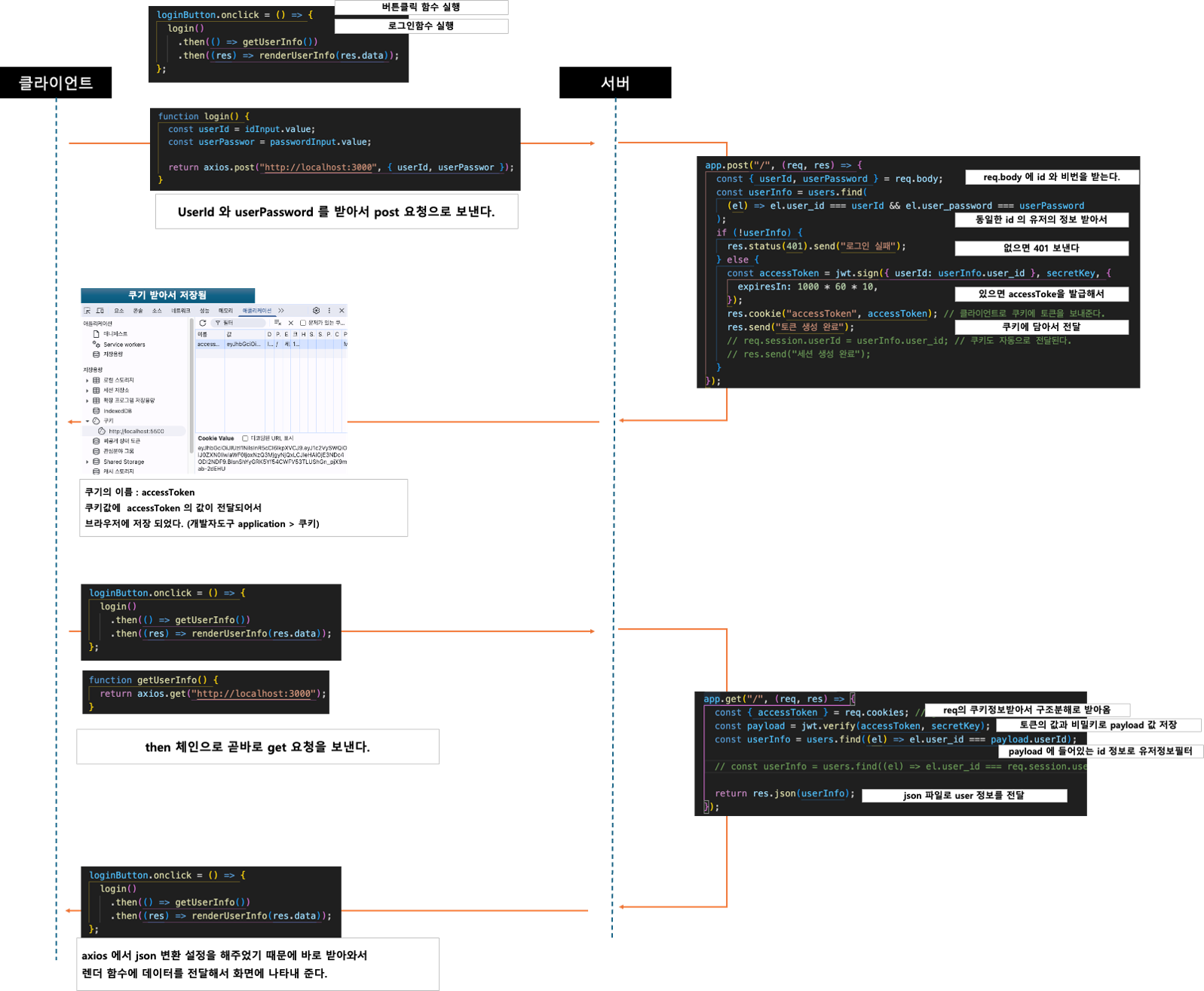 클라이언트에서 get 요청을 보내면 가지고 있던 쿠키정보도 같이 전달되며 서버에서 Header와 Payload 값을 인코딩한 값에서