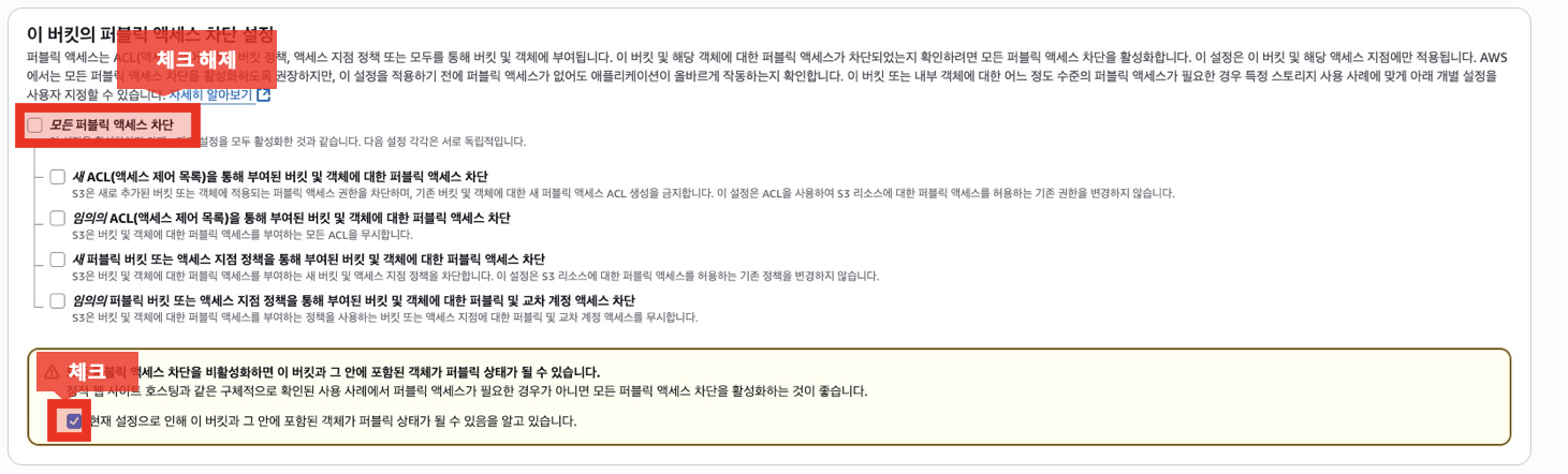 4. 버킷 이름 및 퍼블릭 액세스 차단 설정