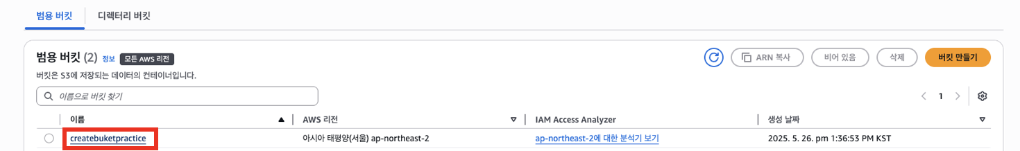 4) 버킷 이름으로 생성이 되었다. 생성된 버킷을 클릭해서 들어가 본다.