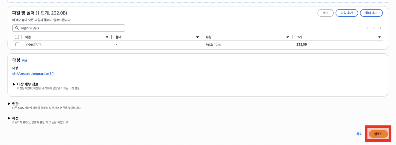 1) 버킷으로 가서 생성된 버킷으로 클릭해서 들어 간다.