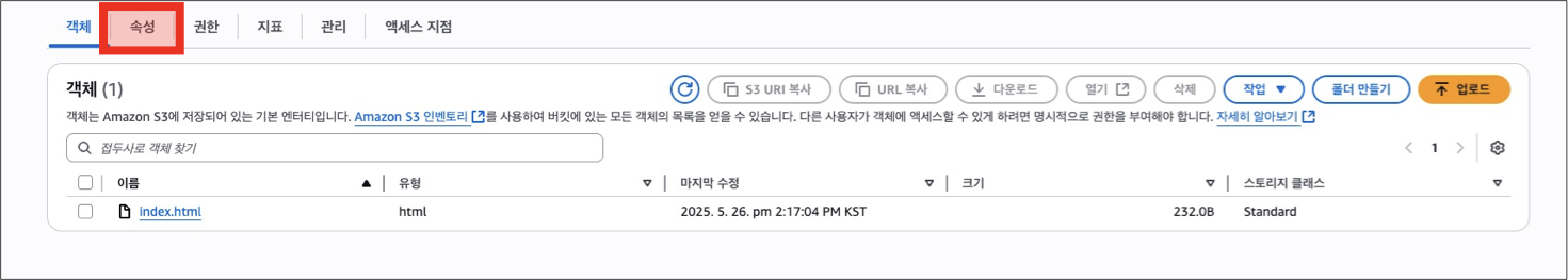 속성 탭의 맨 아래 부분에 버킷 웹 사이트 엔트 포인트라고 나온다.