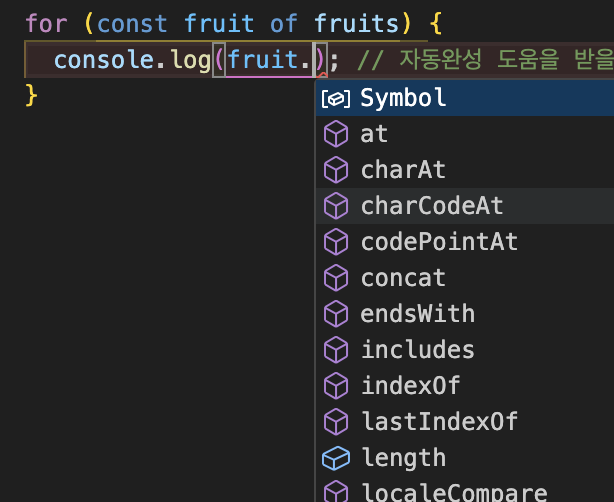 console.log(fruit.toUpperCase()); // 자동완성 도움을 받을 수 있음