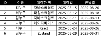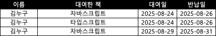 기록이 많아 질 경우 이름과 대여한 책조합으로 대여기록을 특정할 수 없다.