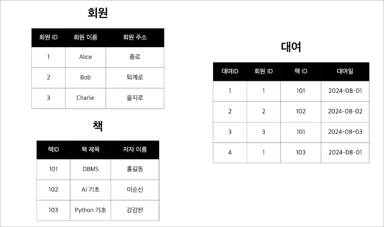 이렇게 하게 되면 대여 테이블의 회원 ID 를 참고 하기 때문에 회원 테이블의 이름만 바꿔도 된다.